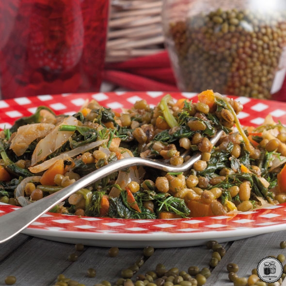 Σε ένα μεγάλο μπολ γεμάτο νερό ρίχνουμε τη ροβίτσα, την αφήνουμε να μουλιάσει για 2-3 ώρες και τη στραγγίζουμε. Σε μια βαθιά κατσαρόλα ζεσταίνουμε το μισό λάδι σε μέτρια φωτιά και σοτάρουμε το κρεμμύδι, το σκόρδο και την καυτερή πιπερίτσα για 2-3 λεπτά. Προσθέτουμε τη ροβίτσα, την ντομάτα, το καρότο και νερό, μέχρι να σκεπαστούν τα υλικά. Βράζουμε με κλειστό καπάκι για περίπου 30 λεπτά. Πέντε λεπτά προτού γίνει ρίχνουμε αλάτι, πιπέρι, την πάπρικα, το φινόκιο και το σπανάκι και ανακατεύουμε καλά με ξύλινη κουτάλα. Βράζουμε για 5 λεπτά ακόμη με κλειστό καπάκι. Αποσύρουμε από τη φωτιά, πασπαλίζουμε με τον μάραθο, ρίχνουμε το υπόλοιπο λάδι, ανακατεύουμε καλά και σερβίρουμε.